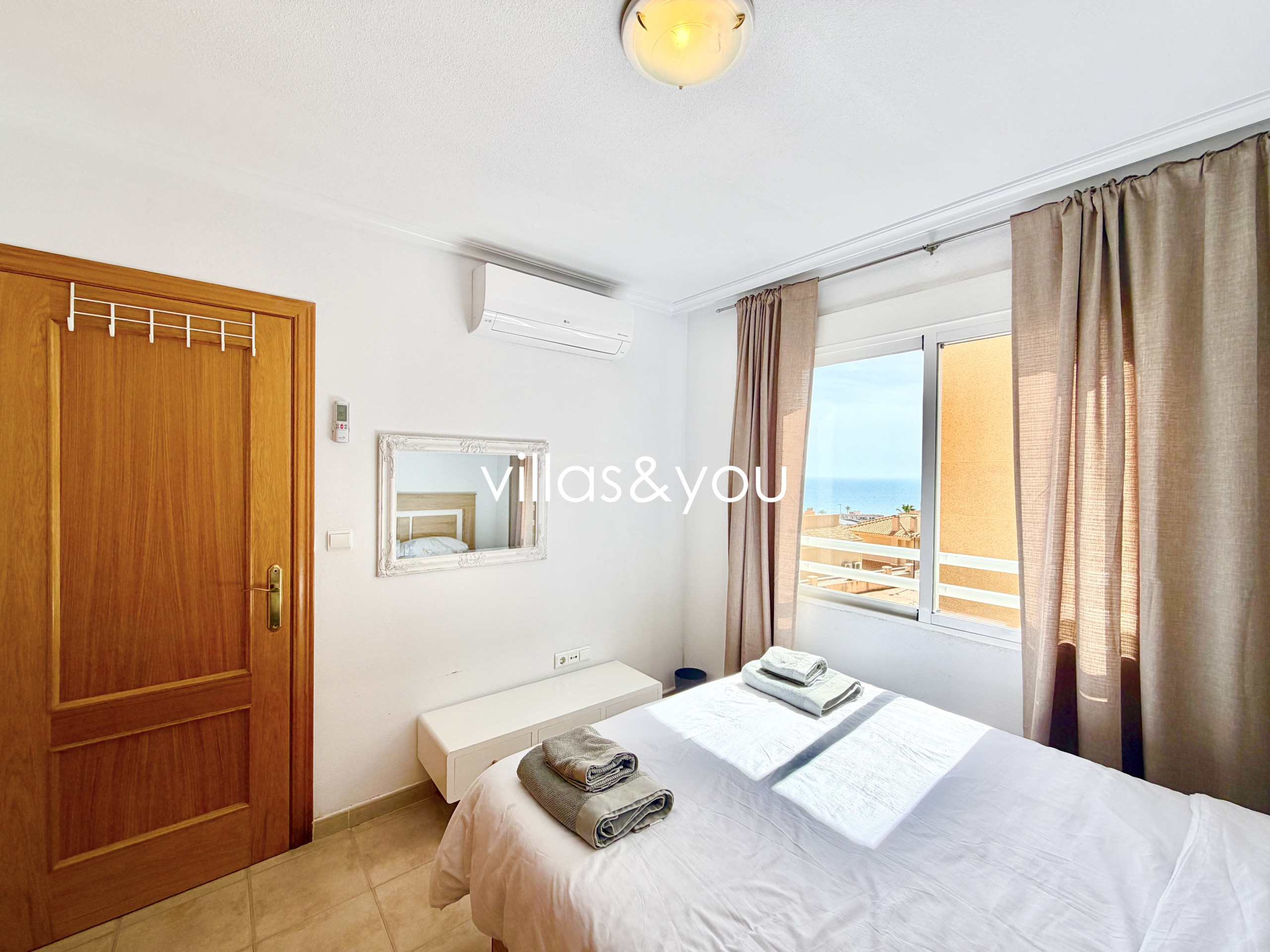Die Wohnung verfügt über 2 Schlafzimmer, 1 Badezimmer, Wohn-/Esszimmer mit amerikanischer Küche und eine schöne Terrasse mit herrlichem Blick auf das Meer und den Gemeinschaftspool.