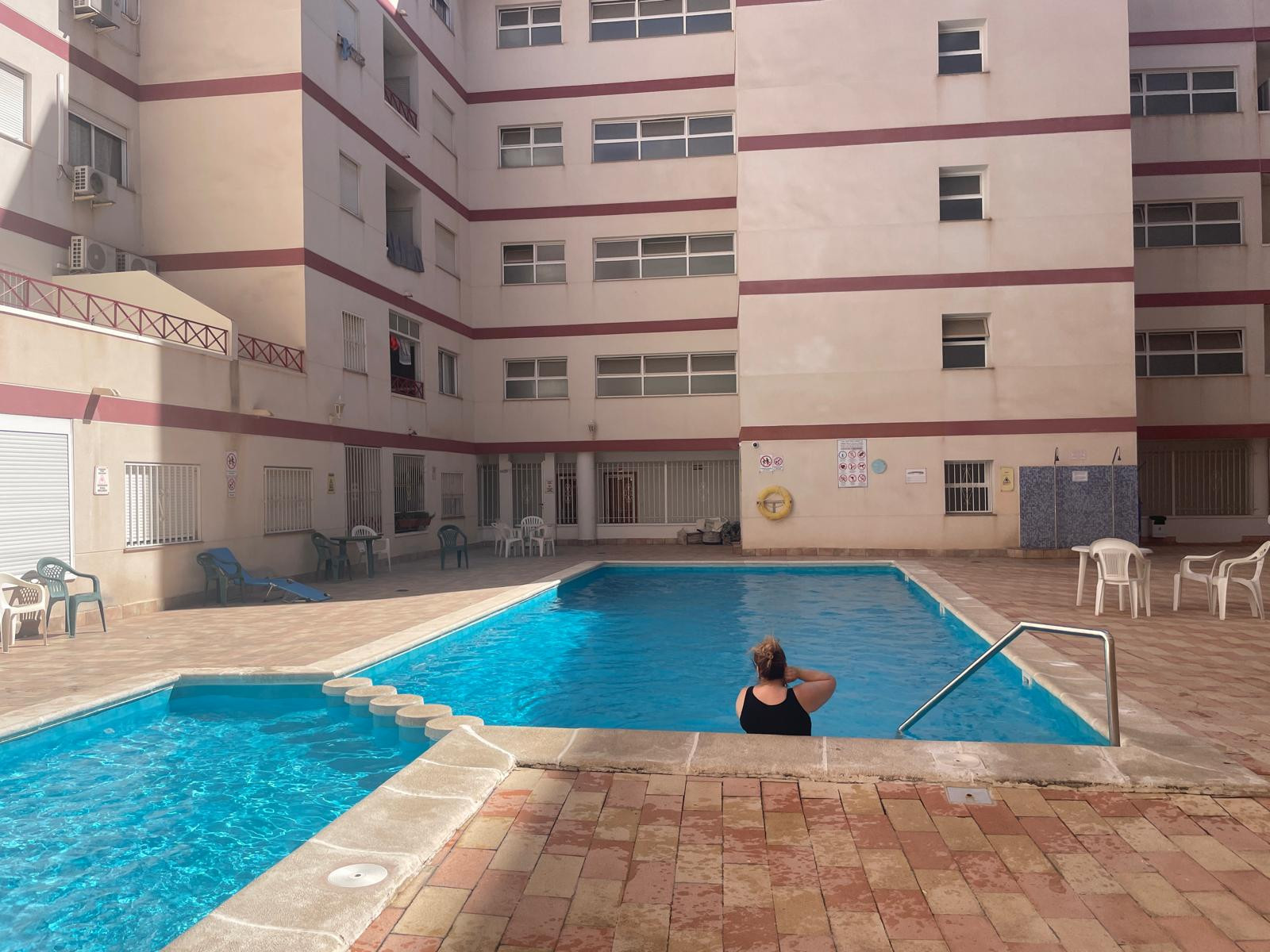 Het appartement bevindt zich op de eerste verdieping met lift en beschikt over een gemeenschappelijk zwembad, airconditioning (warm en koud) en internet/WiFi.