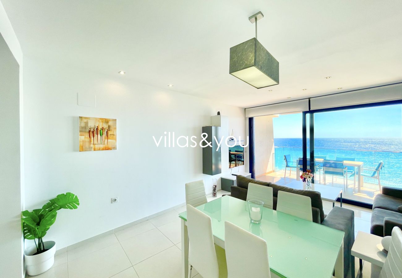 El apartamento está ubicado en el octavo piso con ascensor y cuenta con las vistas al mar más impresionantes que jamás haya visto, es muy luminoso, está bien amueblado y tiene una gran terraza con vistas excepcionales al mar y tiene aire acondicionado (frío/calor) en todo el apartamento, cocina americana con lavavajillas y todo lo necesario para una estancia perfecta… Además dispone de plaza de garaje subterránea privada incluida.