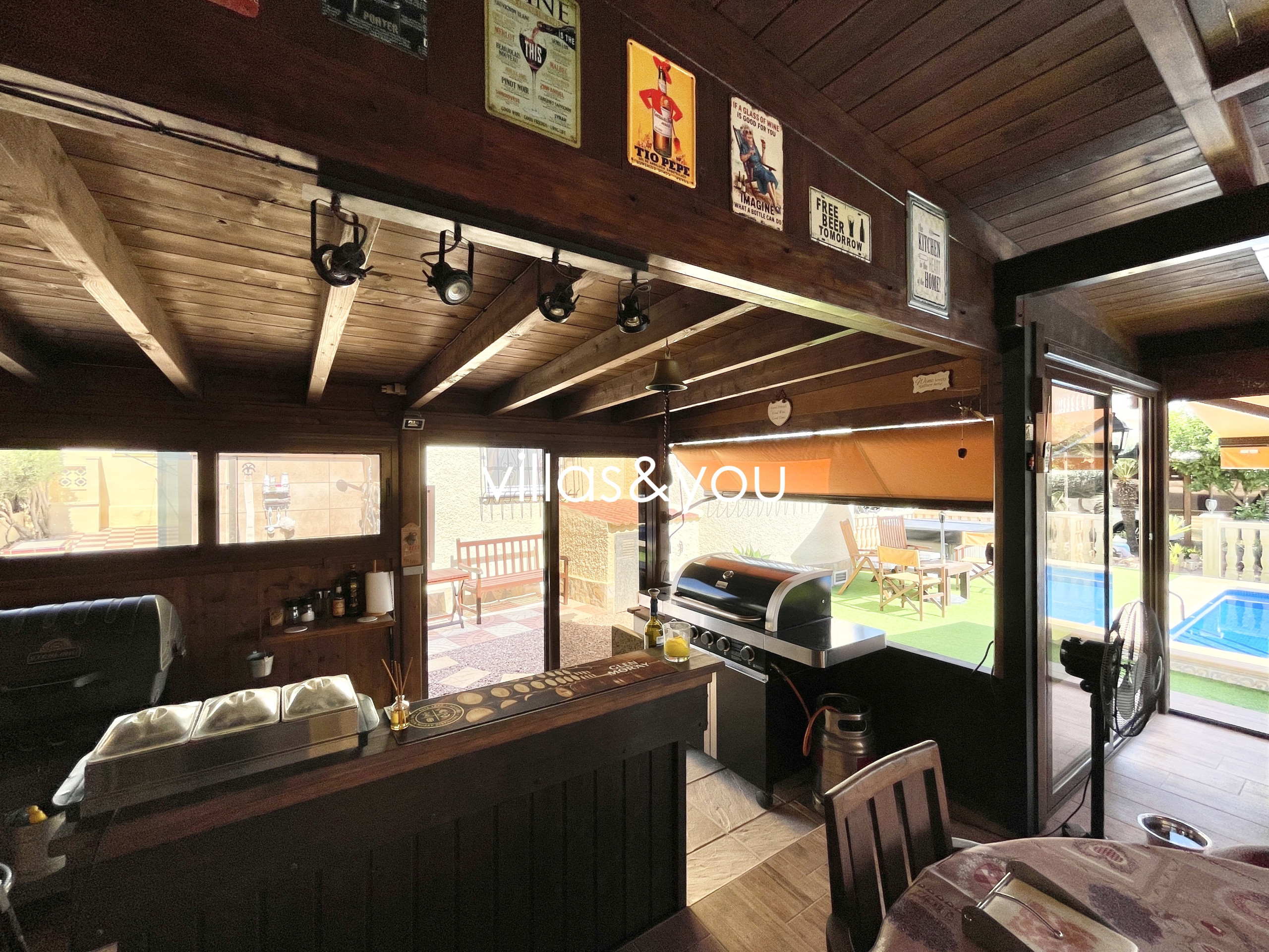 La villa tiene 3 dormitorios, 2 baños, salón/comedor con cocina abierta y terraza acristalada. En el exterior tiene un jardín maravillosamente grande con piscina privada y mucho espacio para pasar tiempo al aire libre, cenar al aire libre y relajarse.
