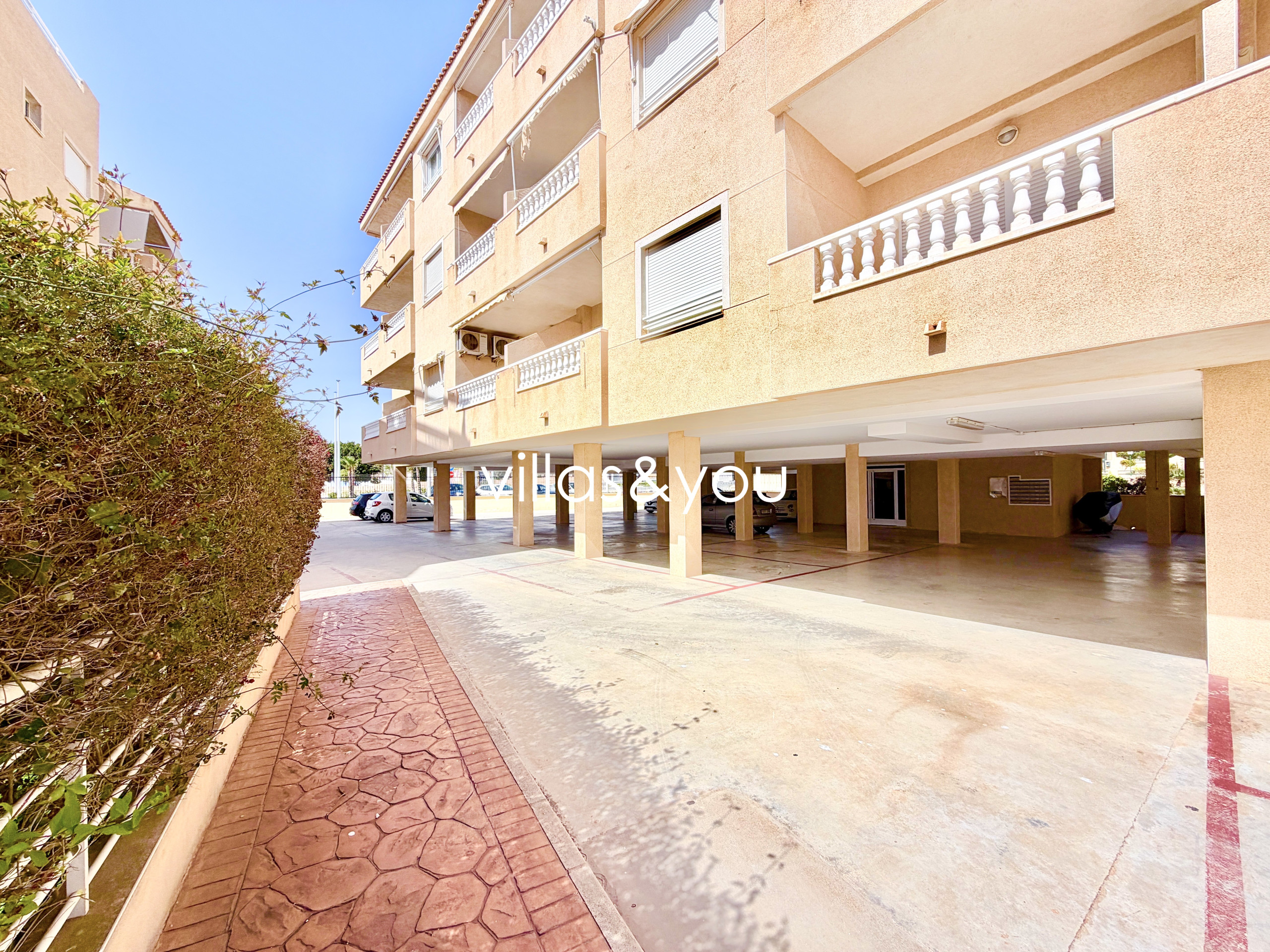 Lägenheten ligger i ett gated komplex med parkering och gemensam pool.